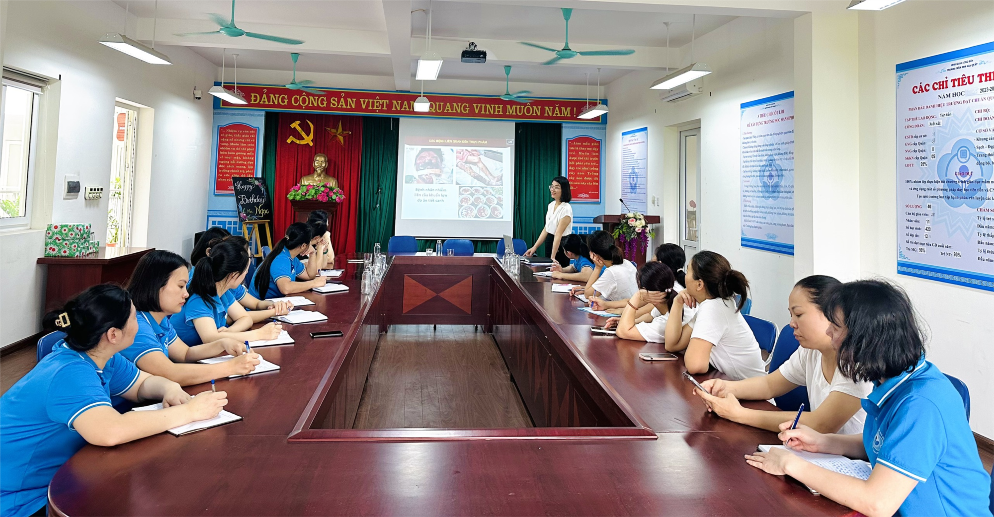 Nhận thức sâu sắc về tầm quan trọng về vệ sinh an toàn thực phẩm trong công tác tổ chức bữa ăn bán trú, thứ bảy ngày 04/5/2024 nhà trường đã tổ chức tập huấn kiến thức về vệ sinh an toàn thực phẩm tới đội ngũ trong nhà trường.