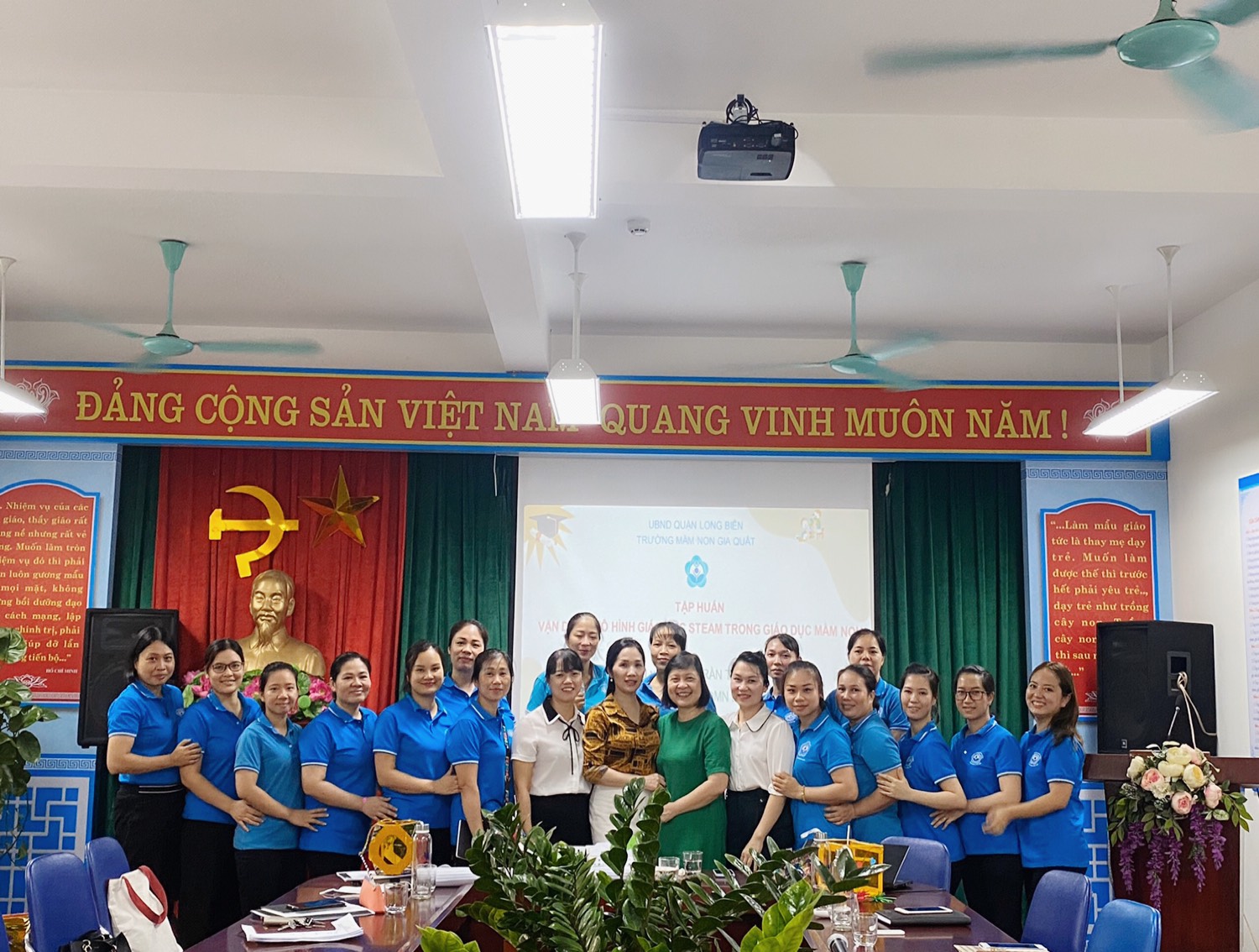 Ngày 2, 3tháng 7, GV khối Nhà trẻ rất tích cực tham gia buổi tập huấn " Vận dụng mô hình STEAM trong giáo dục mầm non" do Giảng viên: Thạc sỹ Trần Thị Hằng- Nguyên phó trưởng khoa GDMN, Trường CĐSPTW giảng dạy. Sau 2 ngày GV khối Nhà trẻ đã lĩnh hội được rất nhiều kiến thức bổ ích về phương pháp STEAM.