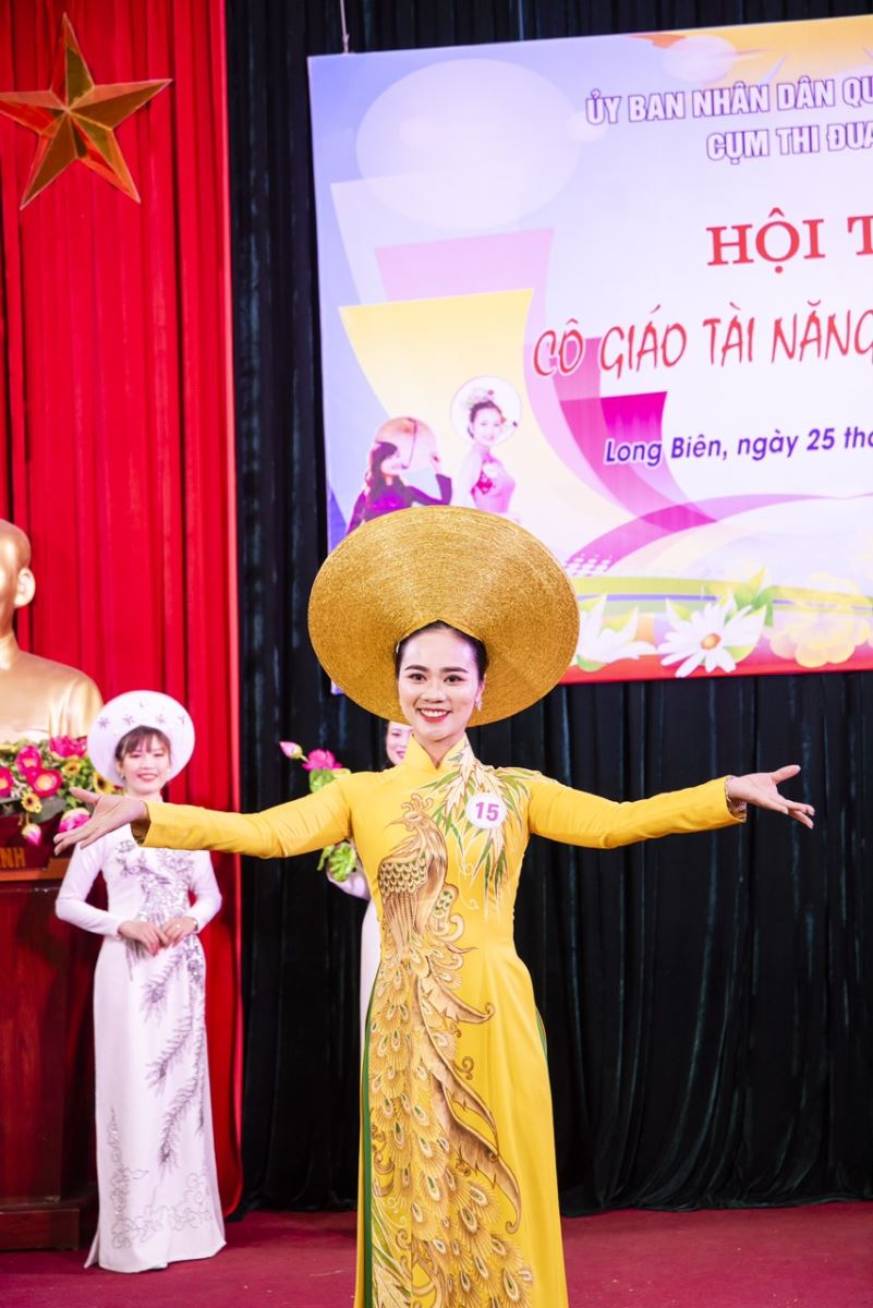 Hình ảnh cô Mai tham gia hội thi Cô giáo tài năng duyên dáng