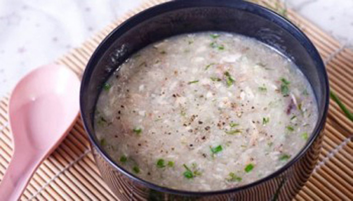 -Ninh nhừ gạo tẻ và gạo nếp thành cháo, cho luôn cả cà rốt vào ninh nhừ