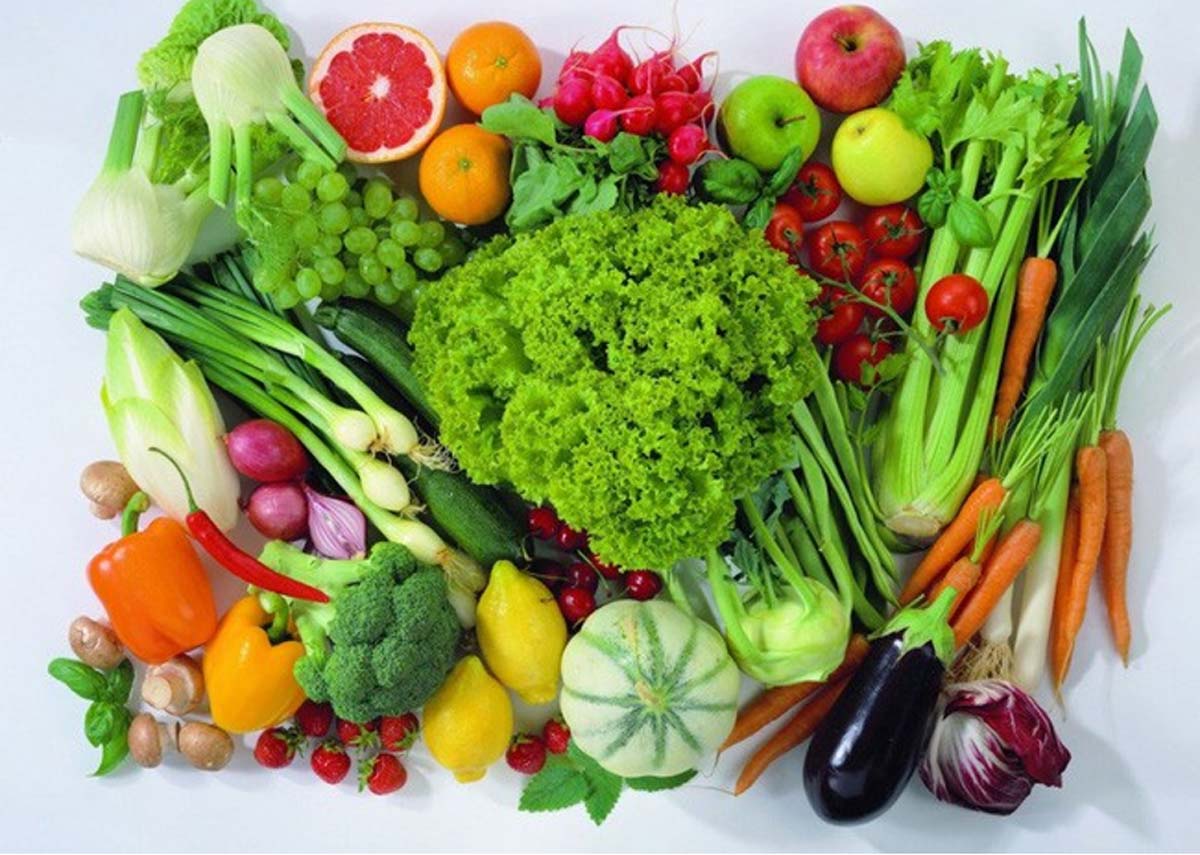 Các loại rau xanh và hoa quả nhiều vitamin C (cam, bưởi, ổi…),