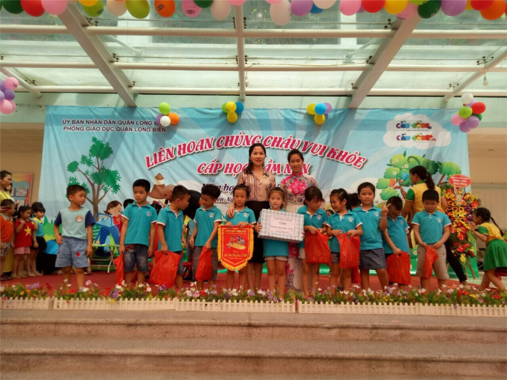 Phòng GD&ĐT quận Long Biên tổ chức liên hoan “ Chúng cháu vui khỏe" cho trẻ mầm non 5 tuổi, cấp học mầm non quận Long Biên vào sáng ngày 18/4/2019. Trường mầm non Gia Quất tham gia Liên hoan“Chúng cháu vui khỏe" với trò chơi vận động “Bịt mắt đánh trống”. Kết thúc trò chơi, với sự nỗ lực hết sức của các bé, đội thi của trường mầm non Gia Quất đã giành giải nhất trò chơi tại liên hoan “Chúng cháu vui khỏe".