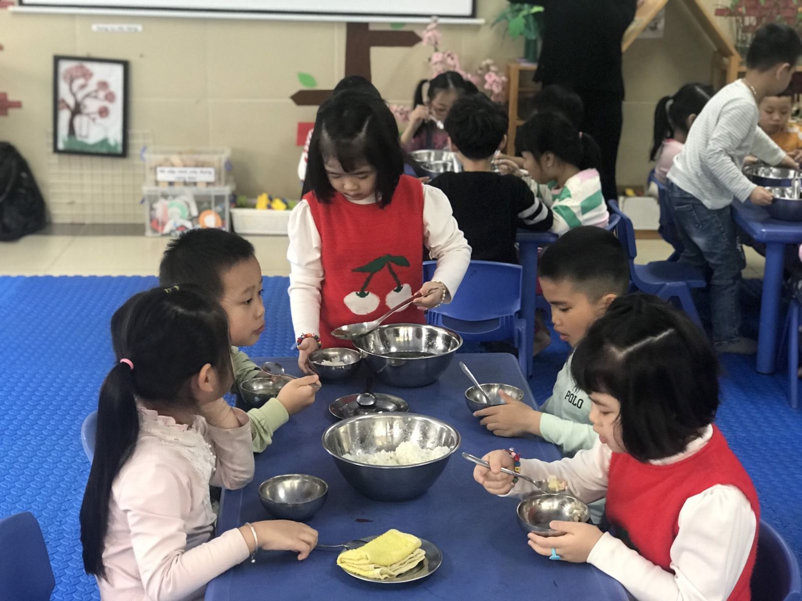 Dưới đây là một số hình ảnh giờ ăn của các bé lớp MGL A1: