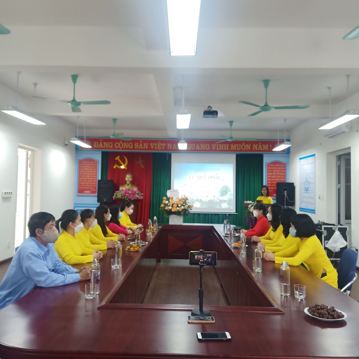 Năm học này tình hình dịch bệnh vẫn diễn biến hết sức phức tạp, chúng ta chưa được đến trường mà vẫn phải làm việc online. Tuy nhiên, BGH luôn mong các đc cố gắng đồng lòng chung sức và ý thức trách nhiệm để cùng nhau vượt qua đại dịch và sớm được trở lại trường học. Với nhiệm vụ cao cả là đón chuẩn QG và kiểm định đánh giá ngoài, tôi kêu gọi tinh thần trách nhiệm và sự nêu gương của các đồng chí để chúng ta sẽ thực hiện thắng lợi nhiệm vụ năm học 21-22.
