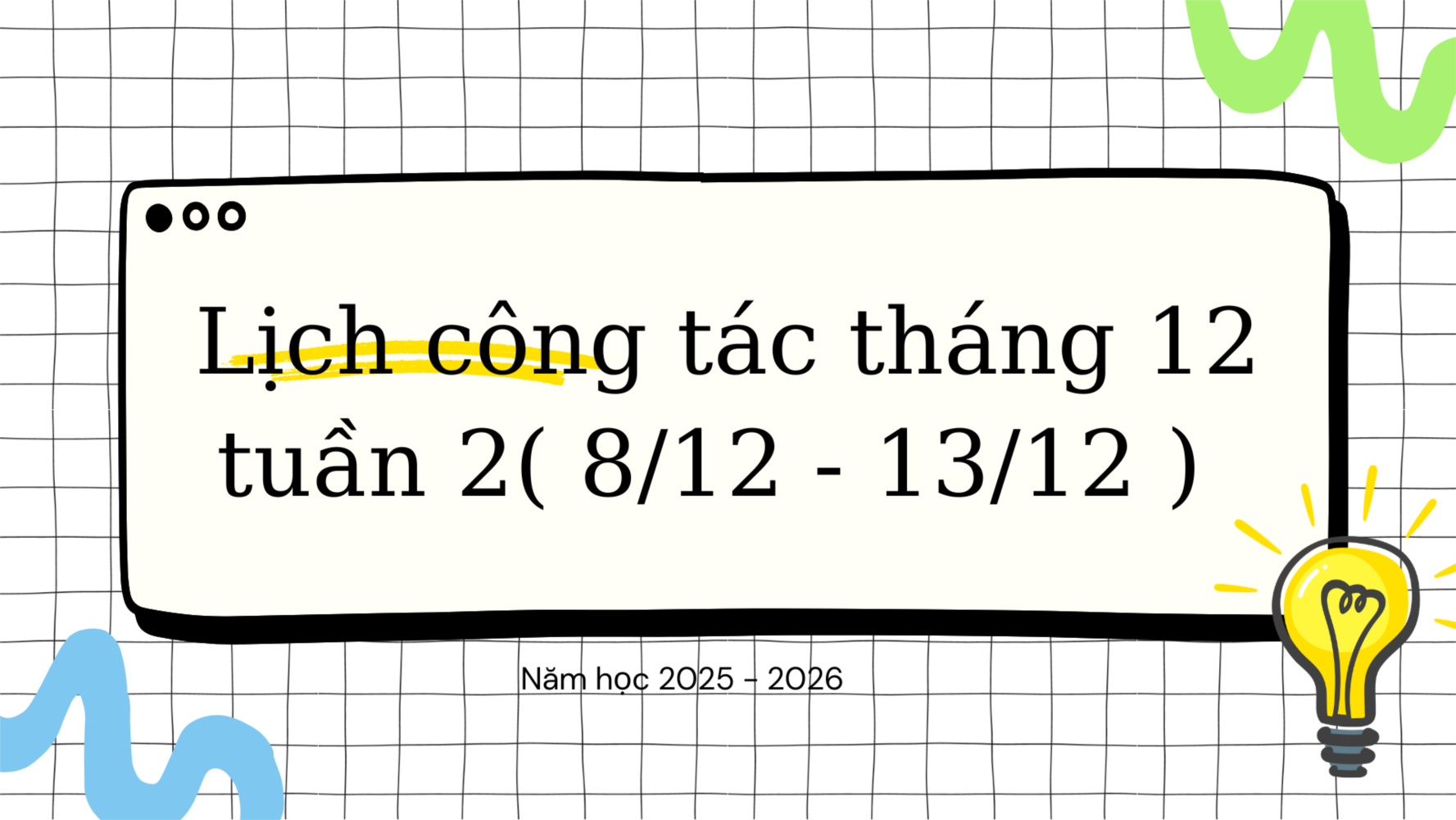| 3 | Nguyễn Thùy Linh | S | Học lớp Quản lý giáo dục của Sở | Học lớp Quản lý giáo dục của Sở | -Kiểm tra giờ đón trẻ, thể dục sáng - Dự giờ ăn lớp A3 | -Kiểm tra giờ đón trẻ khối NT - Hoàn thiện hồ sơ công khai tháng 12 | - Kiểm tra ca trực tổ bảo vệ - Kiểm tra dây chuyền bếp - Dự giờ ăn C1 | Nghỉ |