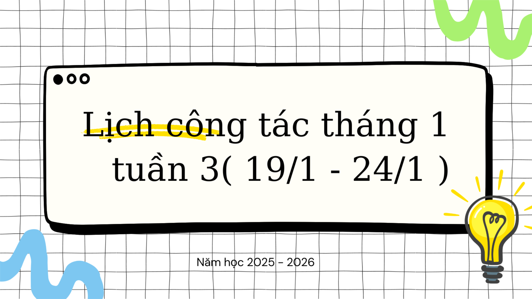 | 3 | Dương Thị Minh Ngọc | S | -Kiểm tra công tác chuẩn bị trang trí tết - Xây dựng Hội thi gói bánh chưng mừng xuân Bính Ngọ | - Kiểm tra vệ sinh các lớp - Kiến tập lớp nhà trẻ D3 lồng ghép sinh hoạt chuyên môn | - Kiểm tra giờ thể dục sáng - Hoàn thiện quy chế thu cho công đoàn nhiệm kỳ 2025-2030 | - Kiểm tra công tác vệ sinh phòng năng khiếu - Họp đánh giá thi đua, công tác tháng 1/2026 | -Dự giờ đón khối NT - Dự giờ HĐH lớp C1 - Dự HĐG lớp C2 | Trực trường |