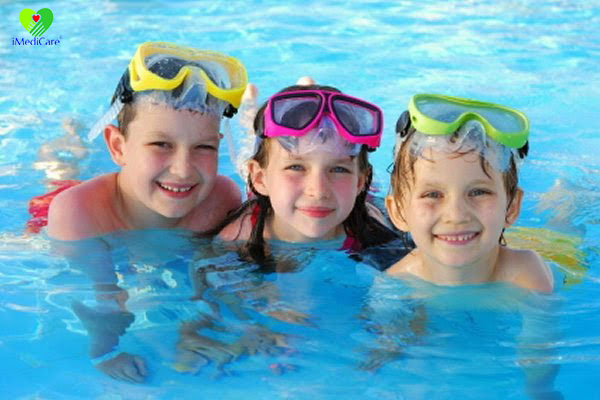 - Cho con xuống nước từ từ, không nên lao mình xuống nước ngay để tránh thay đổi nhiệt độ cơ thể đột ngột dẫn đến cảm lạnh.