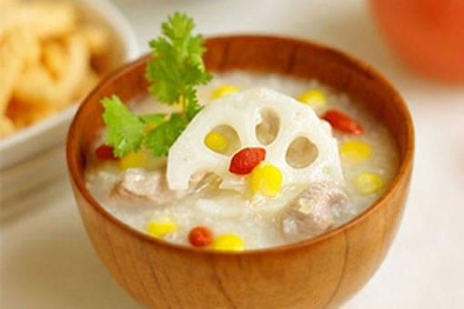 Nguyên liệu: Gạo; ngó sen; ngô non; xương ống; thịt thăn; gia vị.