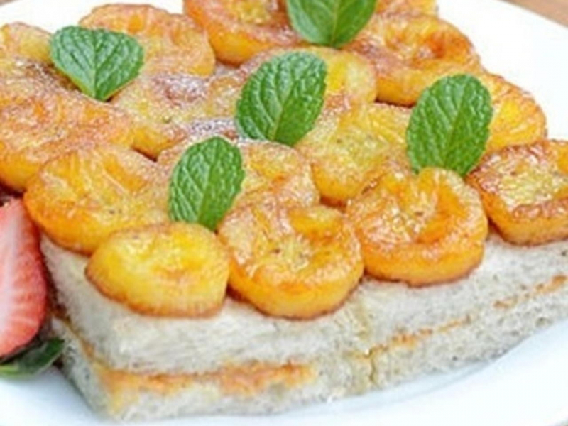 - Chuối lột vỏ rồi đặt lên, tiếp đó cuốn sandwich lại là xong. Bao lại bằng màng bọc thực phẩm và bảo quản trong tủ lạnh đến khi cho bé dùng.