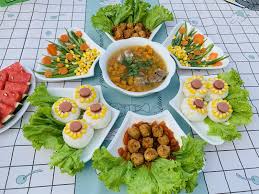 | 2 | Cơm- trứng cút thịt lợn kho tàu Canh rau dền nấu tôm đồng Sữa probi | Bánh gato Sữa Grow Plus A+ | |