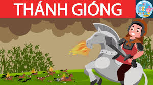 Chuyện kể rằng: vào đời Hùng Vương thứ 6, ở làng Gióng có hai vợ chồng ông lão chăm làm ăn và có tiếng là phúc đức. Hai ông bà ao ước có một đứa con. Một hôm bà ra đồng trông thấy một vết chân to quá, liền đặt bàn chân mình lên ướm thử để xem thua kém bao nhiêu. Không ngờ về nhà bà thụ thai và mười hai tháng sau sinh một thằng bé mặt mũi rất khôi ngô. Hai vợ chồng mừng lắm. Nhưng lạ thay! Ðứa trẻ cho đến khi lên ba vẫn không biết nói, biết cười, cũng chẳng biết đi, cứ đặt đâu thì nằm đấy.